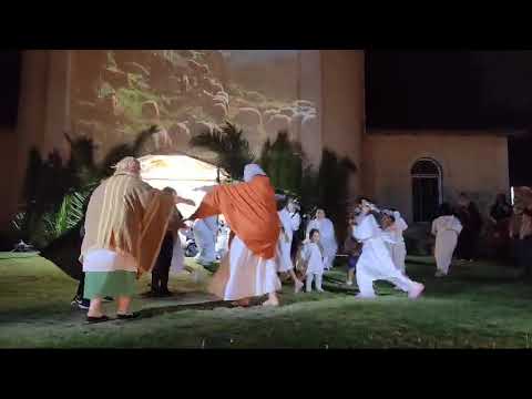 Misa de Nochebuena en la parroquia Santa Teresita con pastorcitos del barrio visitando a Jesús recién nacido.