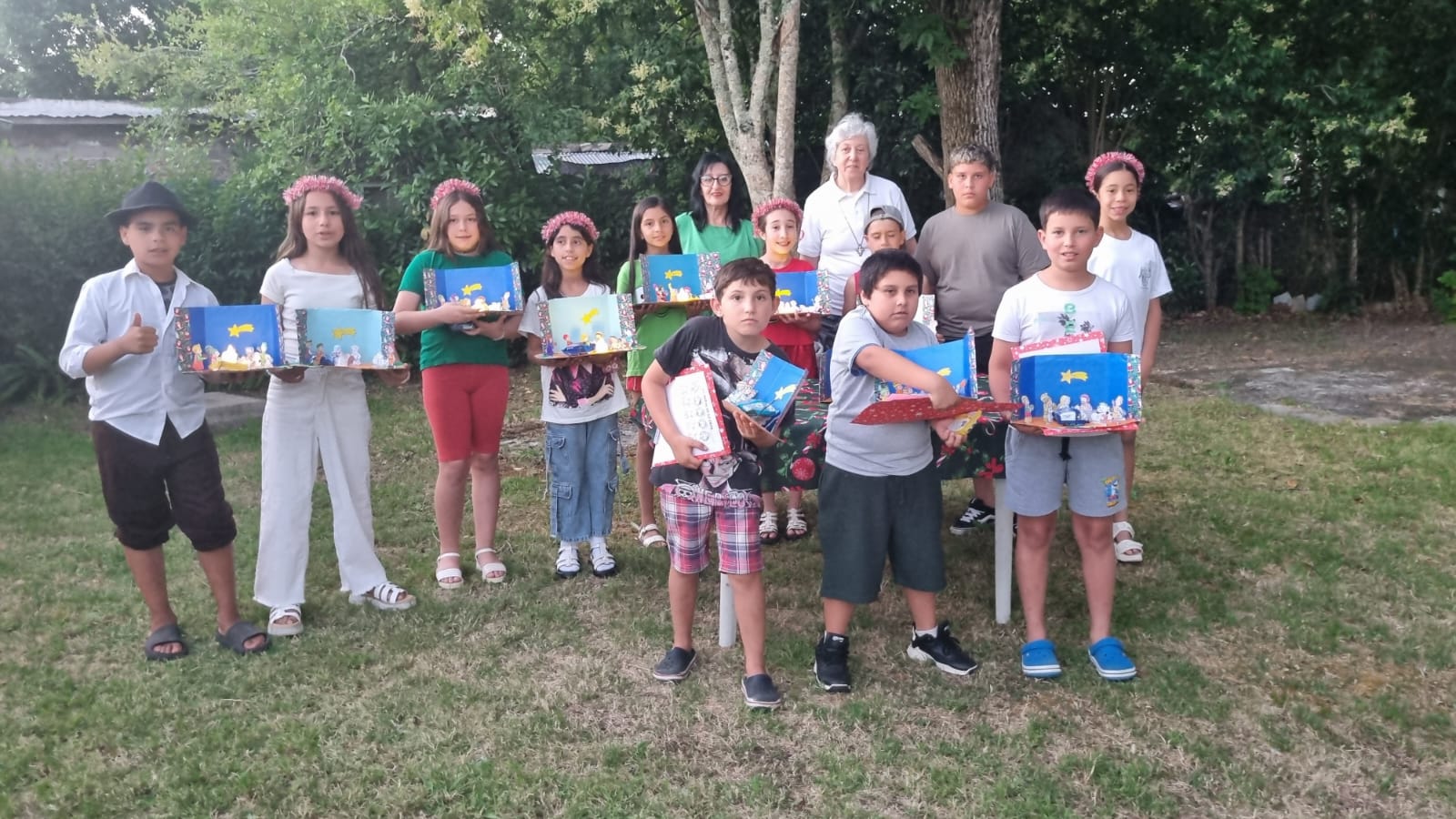 "Con mucha alegría y participación terminamos el año de Catequesis con una celebración Navideña. Empezamos en el templo poniendo nuestros mejores deseos de Bien junto al Pesebre. Luego, rodeados y abrazados por un hermoso atardecer disfrutamos de bailes de los niños, entregamos pesebres y comimos rico. Feliz Navidad desde Carlos Reyles!!!!" (Hermana Rita y Comunidad del Verbo Encarnado)