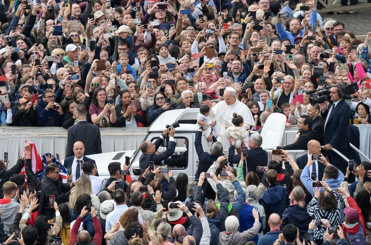 A los miles de files y peregrinos que se congregaron en la Plaza de San Pedro para la Audiencia general, el Santo Padre les dijo que, "la resurrección de Jesucristo es un acontecimiento que nunca termina de ser contemplado y meditado, y cuanto más se profundiza en él, más nos quedamos llenos de asombro, atraídos como por una luz deslumbrante y al mismo tiempo fascinante".
