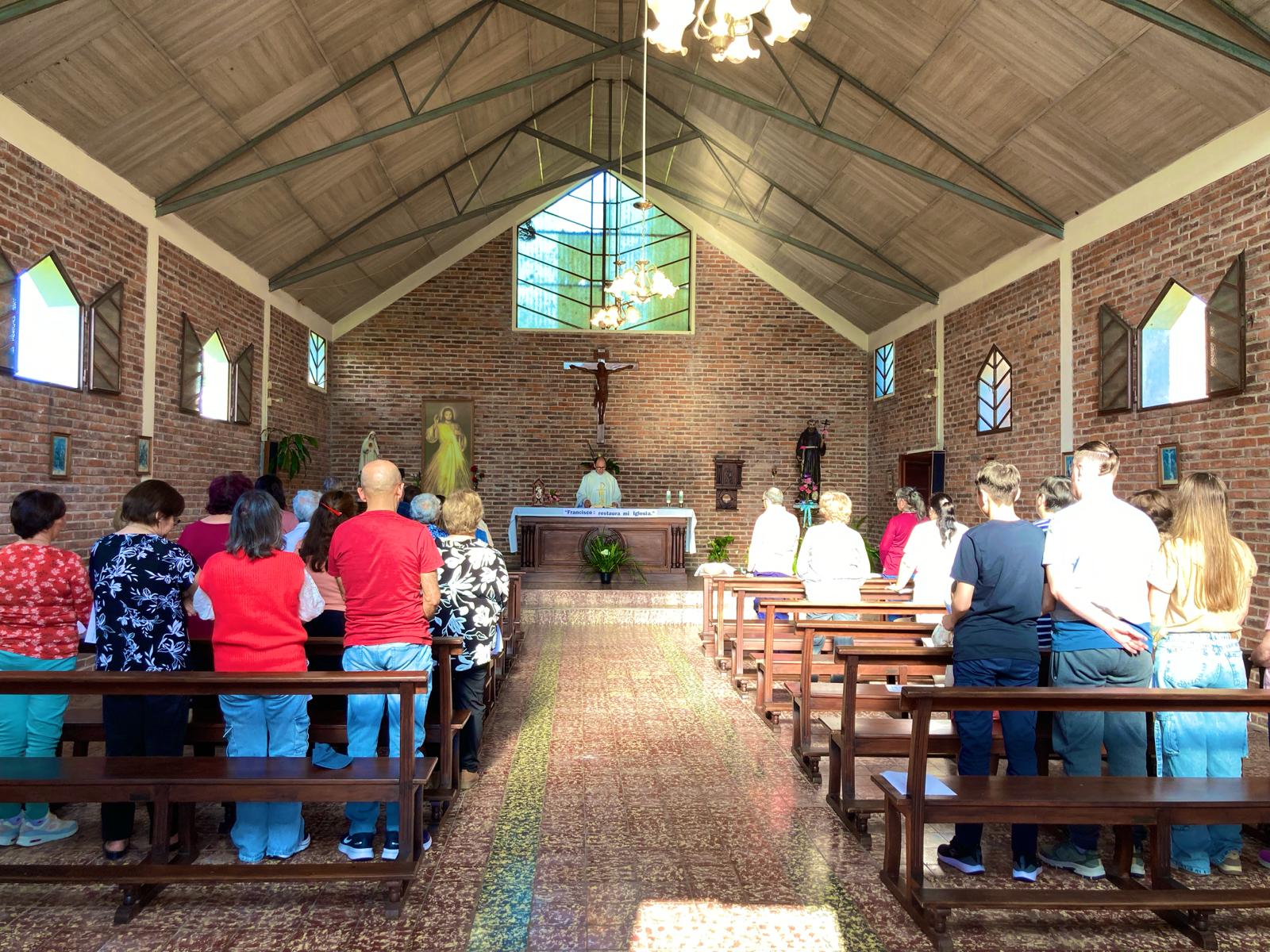 La capilla de Reboledo está dedicada a San Francisco de Asís, el hombre más feliz del mundo. Imitó a Jesús luego de su conversión, vivió la pobreza radical con sus hermanos, trabajó con sus manos, besó al leproso, domesticó al lobo, amó y cantó a la creación.
