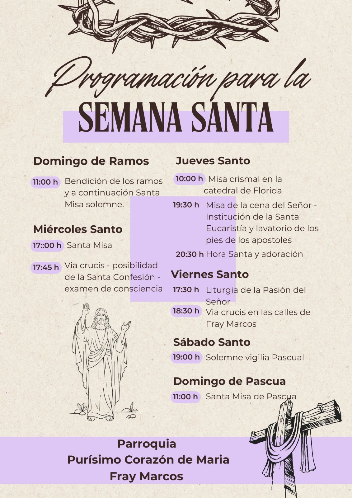 HORARIO DE CELEBRACIONES EN FRAY MARCOS