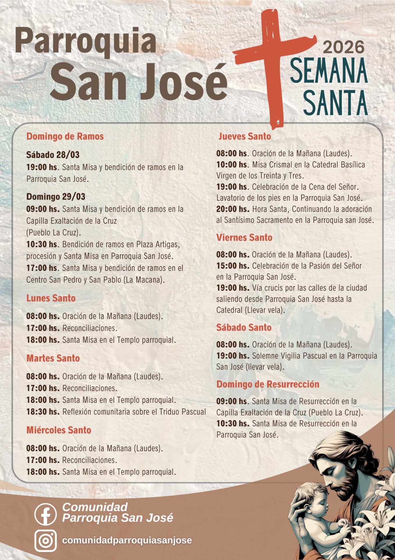 HORARIO DE CELEBRACIONES EN SAN JOSÉ