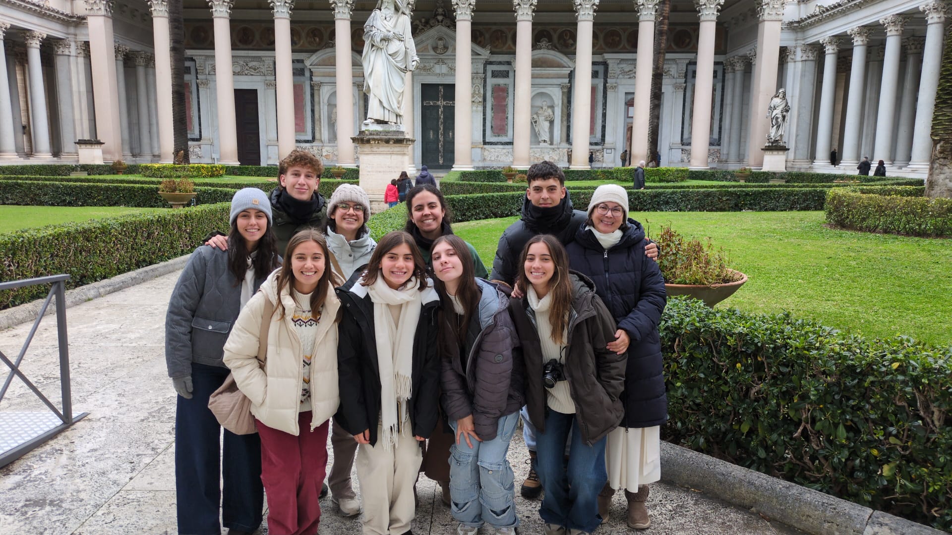 Luego de preparar su peregrinación durante 2024 este grupo de jóvenes está en Roma, conociendo y rezando en lugares clave para nuestra fe. En la foto, en la Basílica Papal de San Pablo Extramuros.