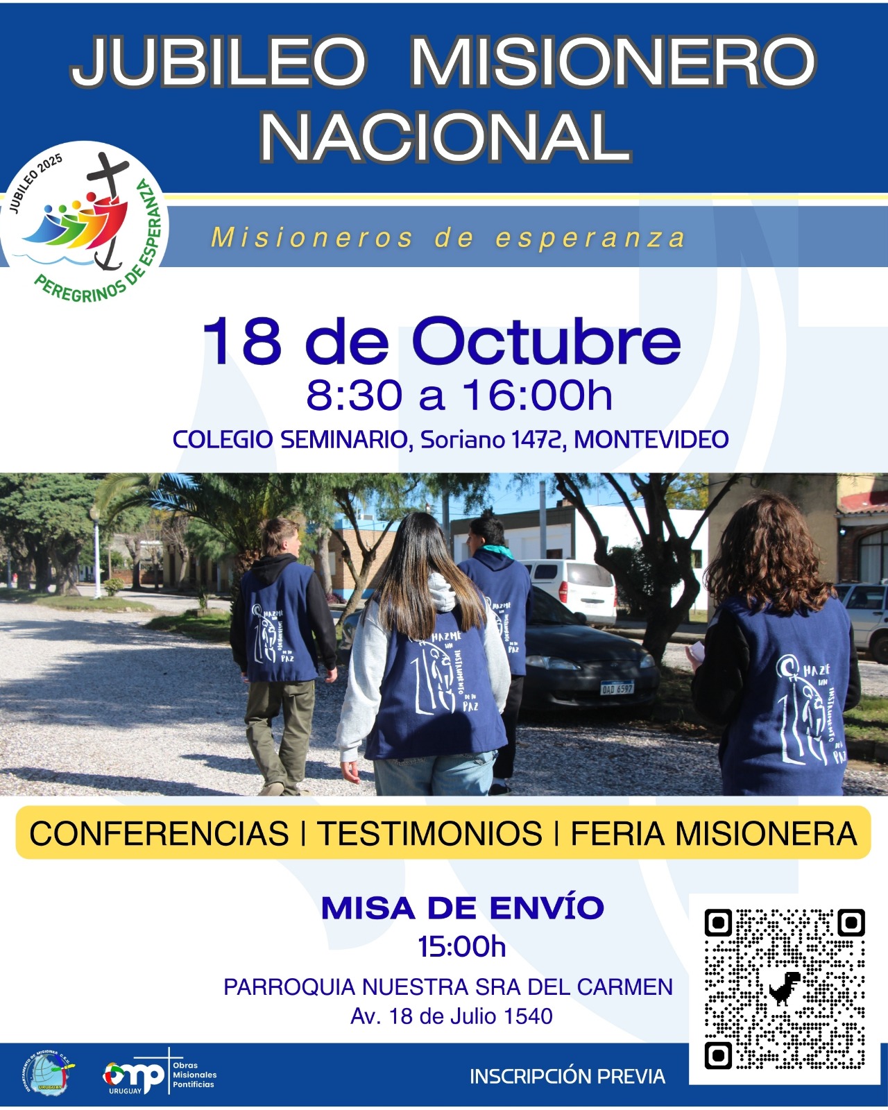Desde el Departamento de Misión de la Conferencia Episcopal del Uruguay queremos invitarles a participar y a comprometerse activamente en el Jubileo Misionero Nacional "Misioneros de Esperanza", que tendrá lugar el próximo 18 de octubre en Montevideo, a partir de las 8:30 horas.