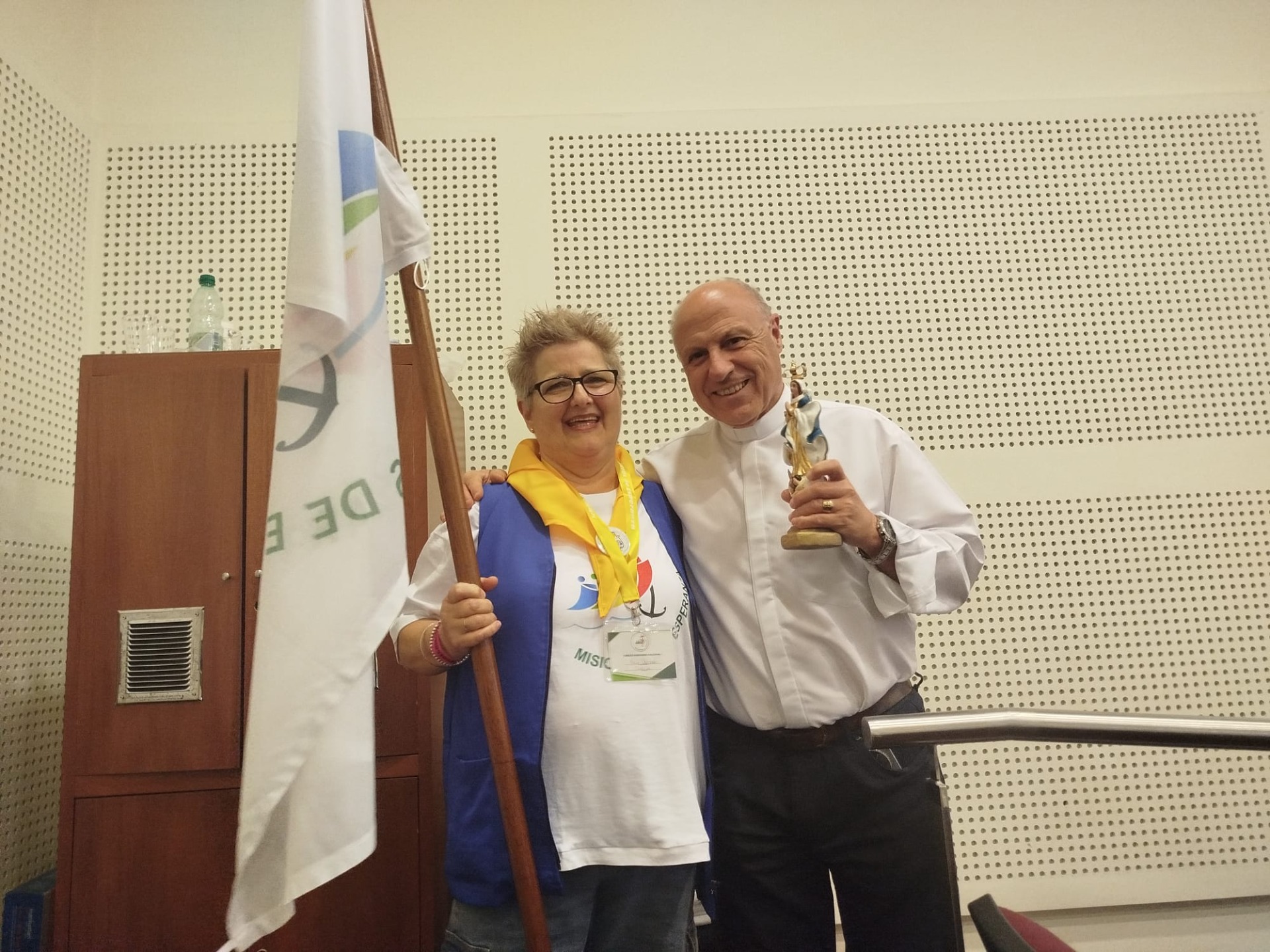 María Ortega, delegada diocesana para las misiones y Mons. Martín en el Jubileo Misionero uruguayo, ayer en Montevideo.