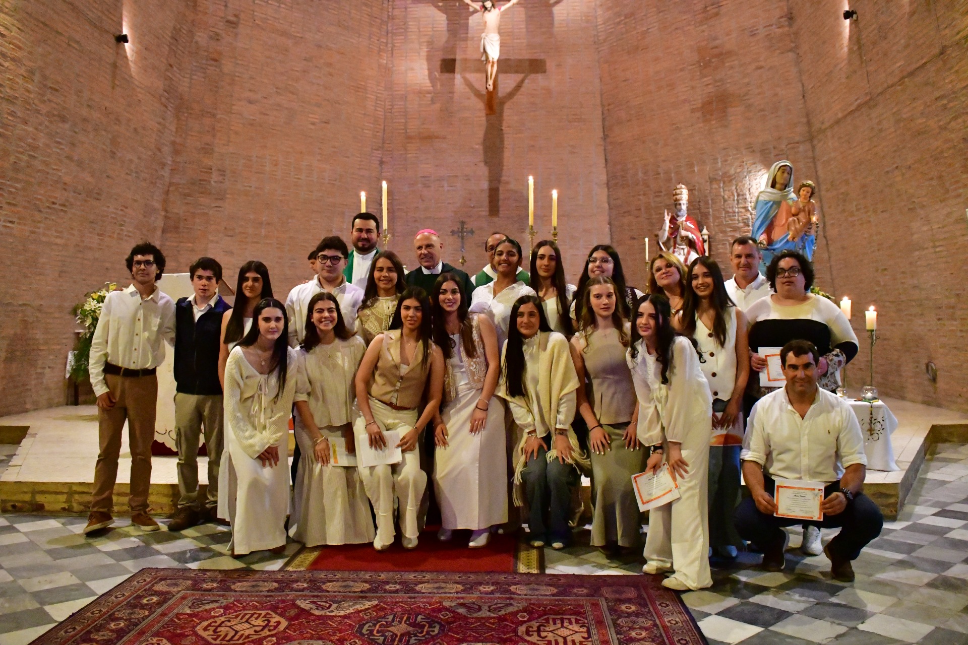 El Obispo Martín confirmó anoche a este grupo de estudiantes del Colegio San Luis y de adultos de la Parroquia San Pedro.